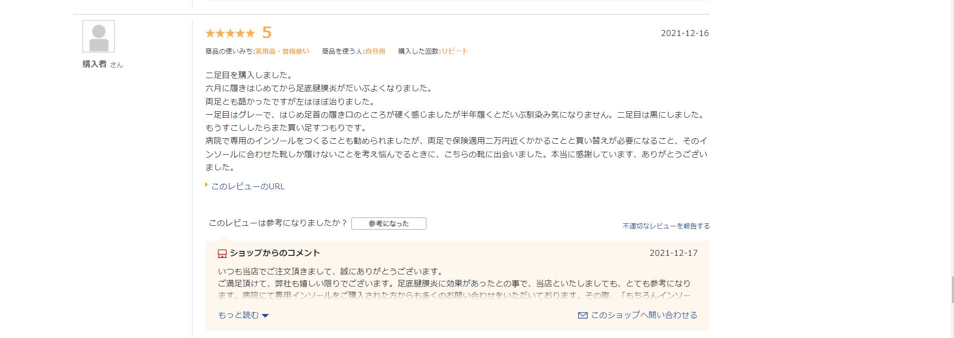 『足底腱膜炎に悩まされていたけど、この靴を履いて症状が軽くなった』